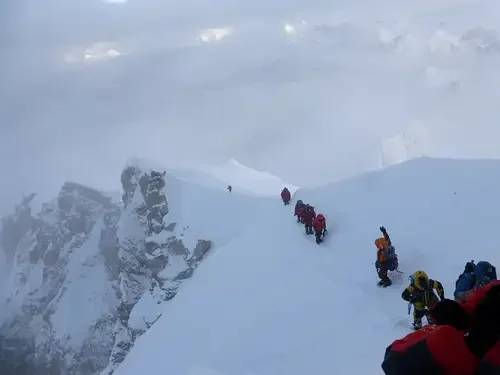 The thing about supplemental oxygen is that it puts that mountain on a completely different playing field. An 8000m peak becomes akin to a 7000m peak. While still difficult, the degree of difficulty without oxygen is several magnitudes in difference. Oxygen using climbers could maintain a steady pace, smile, talk, and perform tasks reasonably. They were happy. I felt like I was in a different world. Speaking was difficult, I was terribly cold (even in reasonable temps), and I was not stoked. My pace was roughly 100-200m vertical per hour.... barely snail speed. For comparison, I can climb 1000m an hour at sea level, without feeling awful. The words of encouragement from climbers descending only made me more upset, as they didn't seem to grasp the hell I was experiencing. I knew they meant well, but it's hard to stay positive being so oxygen deprived. In the end, I gritted my teeth and kept plodding forward.