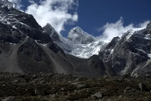 Basecamp was virtually a small city, with hundreds of tents, Wifi(!!!), trekkers, cooks, sherpas, porters, and dogs. Privacy was rare, but the setting was stunning. Most often, it was cloudy above basecamp, although we got the occasional rare glimpse of that beautiful himalayan range.