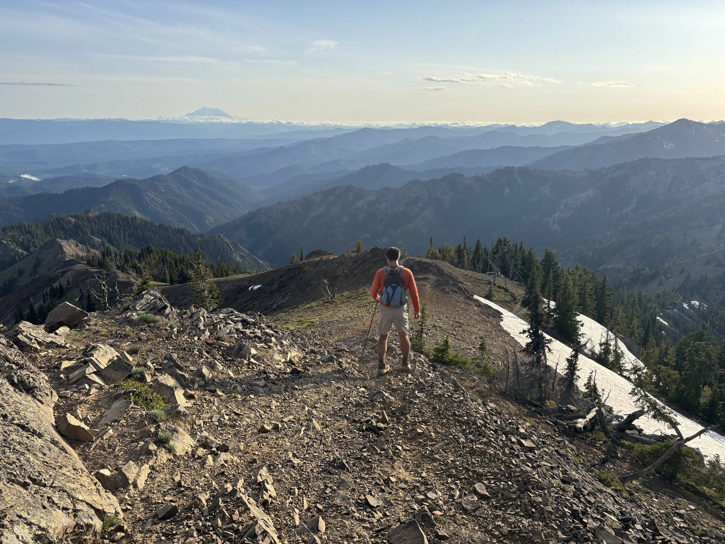 We woke up at 7:30AM and parked Nick’s van at the Miller-Bear trailhead. We then shuttled to Iron Peak trailhead and began our ascent from there. We skipped the quick backtrack detour to Iron peak, starting with Teanaway peak. From Teanaway peak, we hit the summit of Bills Peak, Marys Peak, Bean Peak, Earl Peak, Navaho Peak, Three Brothers, Freedom Peak and finally, Miller Peak. Whew. In total we traveled over 23 miles with approximately 11,500’ of elevation gain. It took us about 11.5 hours at a relatively fast pace with short breaks on each summit.