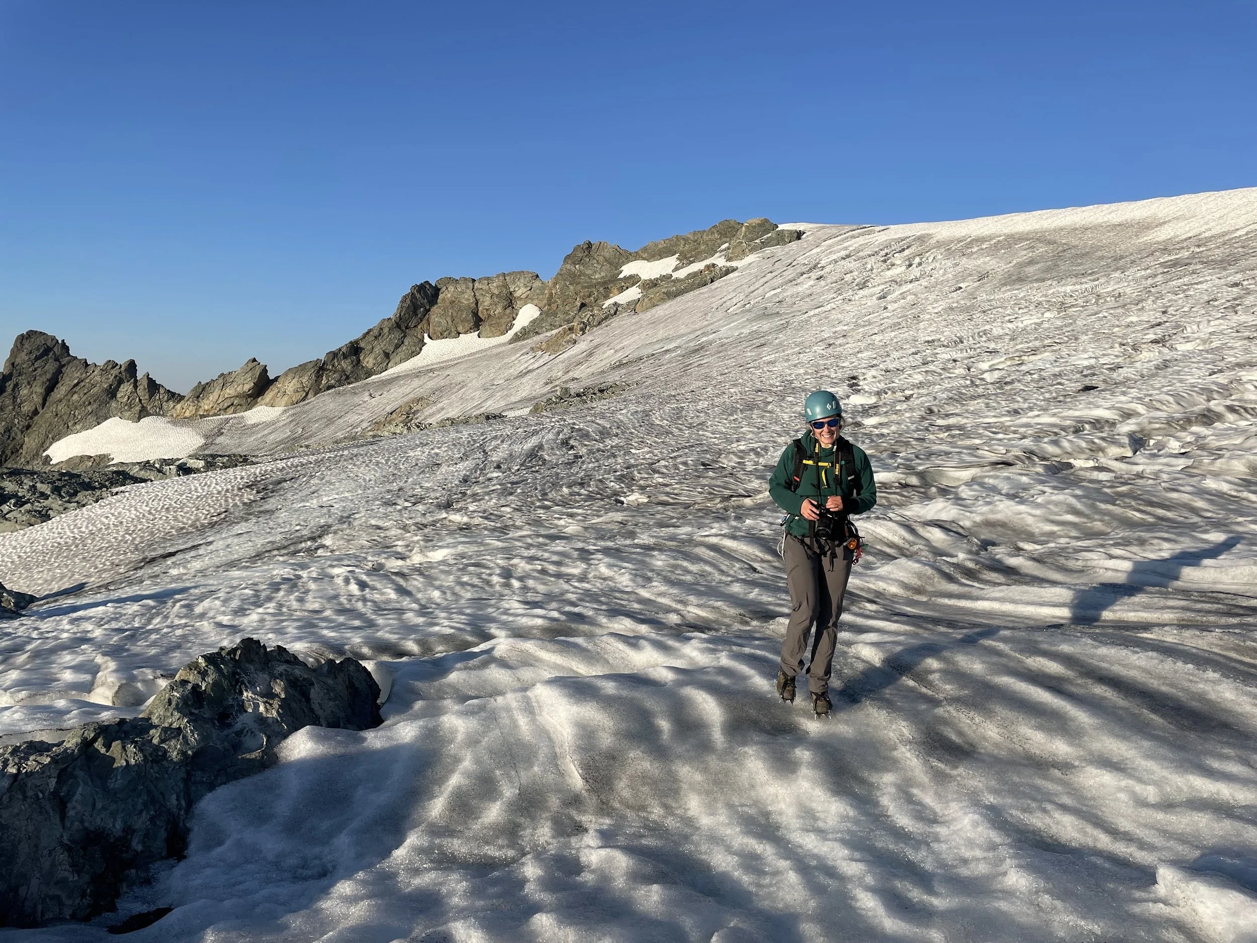 This route begins from the south side of Shuksan, just off of Baker Lake. We begin by ascending through a forest and then to the gentle slopes of the Sulphide Glacier. Eventually, the summit pyramid is reached and the team will climb steep snow/ice or a 4th class scramble to the summit. Enjoy marvelous views of the North Cascades and Baker from the lofty summit pyramid!